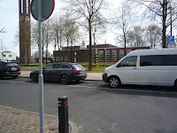 's Middags ben ik op de fiets gestapt om even wat post naar de loods te brengen. Wat een volk op zowel de fietspaden als de trottoirs! Ik zag dat op de parkeerplaats voor campers weer personenauto's stonden. Voor veel camperaars een ergernis. Velen weten niet dat zo'n extra wit bord een exclusiviteit aangeeft. Hier in de buurt parkeert iemand een benzineauto geregeld op een oplaadplek. Op het punt waar ik stond om de foto te nemen, staan voertuigen van Handhaving geparkeerd. Onderweg reed ik weer bijna iemand aan. Het was een oudere man, die enkel naar de grond keek. Was ie soms op zoek naar geld? Je weet het niet in deze rampzalige tijd. Relatief veel ouderen lopen zo gebogen. Zouden ze denken dat men ze niet mogen?